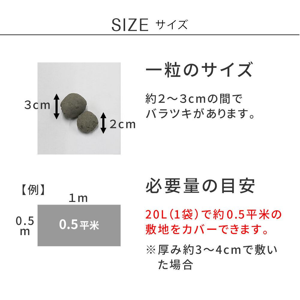 ■サイズ 必要量の目安:20L(1袋)=約0.5平米