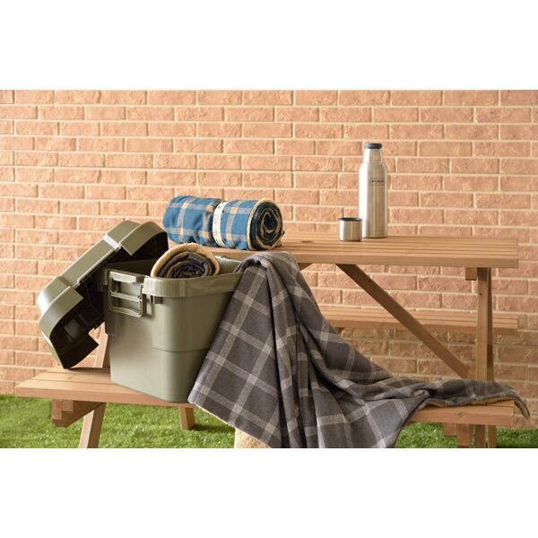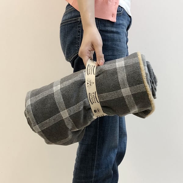 クルッとまとめることができるブランケットです。持ち歩くときは丸めてバンドで留めることができますのでアウトドアでも大活躍です。広げて使うときは小さいポケットの中にバンドを収納することができます。