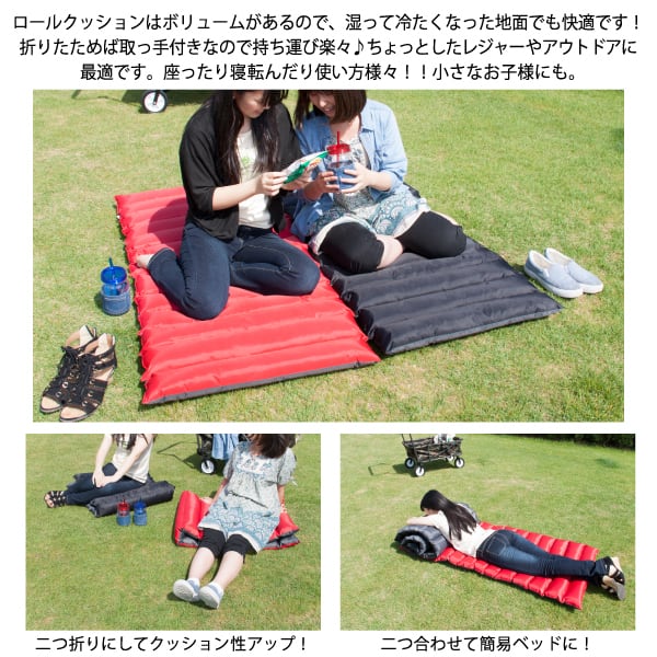 ロールクッション アウトドア キャンプ用品 スポーツ おしゃれ レジャー シート 収納 持ち運び ごろ寝 取っ手付き かわいい シンプル pga-054