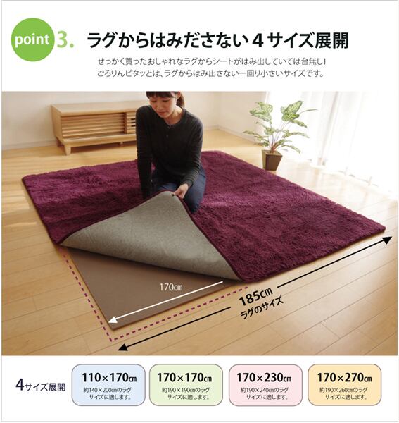 ラグ カーペット 滑り止め 下敷き 敷くだけでボリュームアップ 滑り止めシート ごろりんピタッと 110×170cm フリーカットタイプ ふんわり 切って使える マット 4860991-1