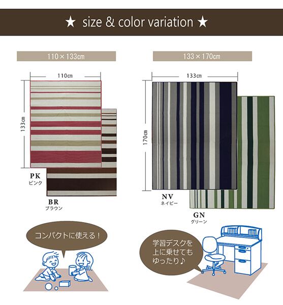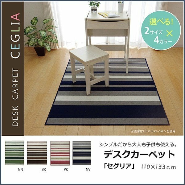 デスクカーペット 男の子 女の子 ルームマット ボーダー ストライプ セグリア ブラウン グリーン ネイビー ピンク 約110×133cm 新入学 キッズラグ 子供 5122407-1
