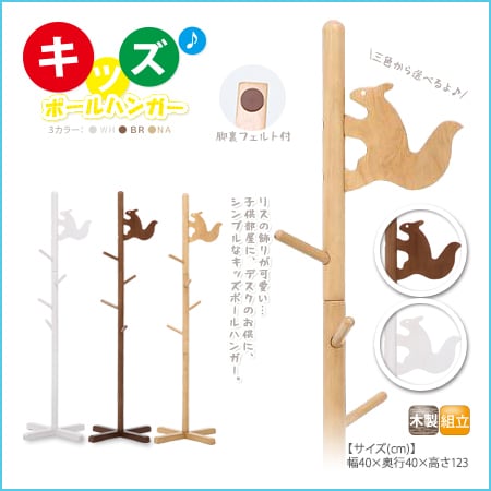 ポールハンガー 木製 キッズ 子供 りす ジュニア こども ポールスタンド かわいい 入学 幼稚園 保育園 バッグ掛け ハンガー かばん掛け 北欧風 pkz-024