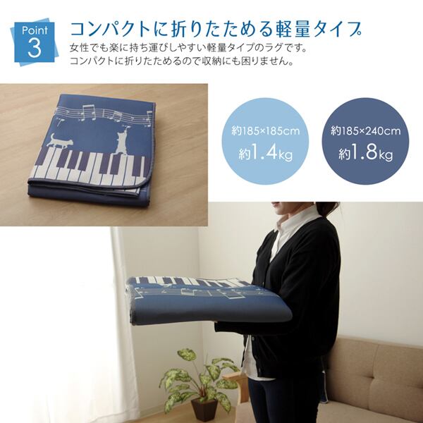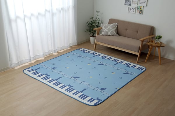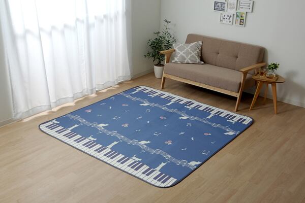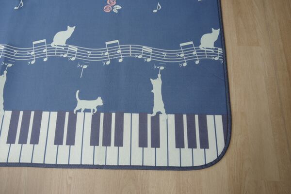 冷感 ラグ カーペット おしゃれ ネコ柄 猫 ねこ キャット ピアノ 音符 ミーヤン 夏ラグ 接触冷感 ひんやり 正方形 サイズ 約185×185cm 4938329-79