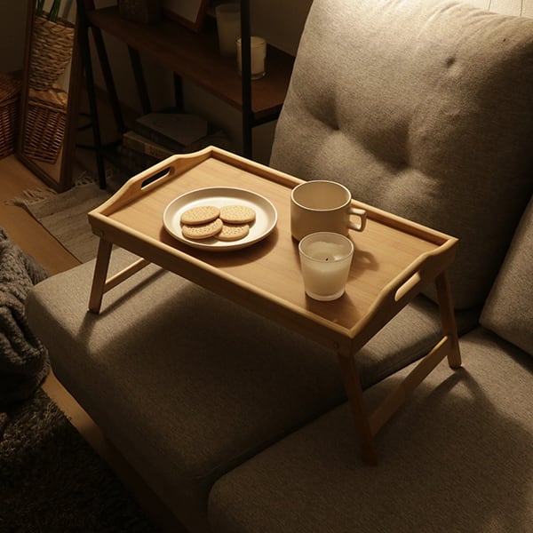 とっても便利なトレーテーブル。持ち手もついて使いやすい!フチ付き天板で物が落ちにくいです。アウトドアにもおすすめです。可愛いちゃぶ台です。ノンスリップ加工の天板で物が滑りにくいです。