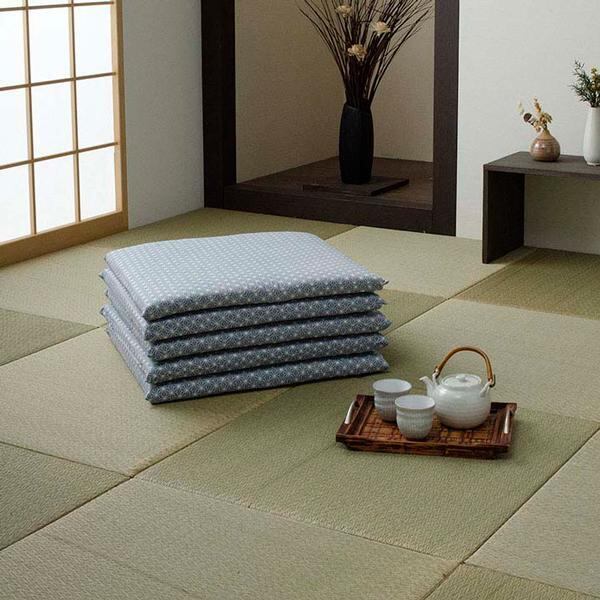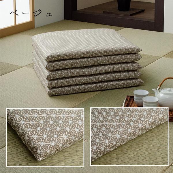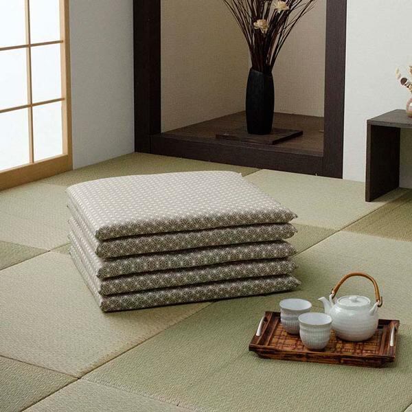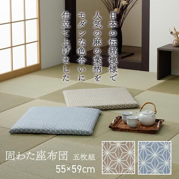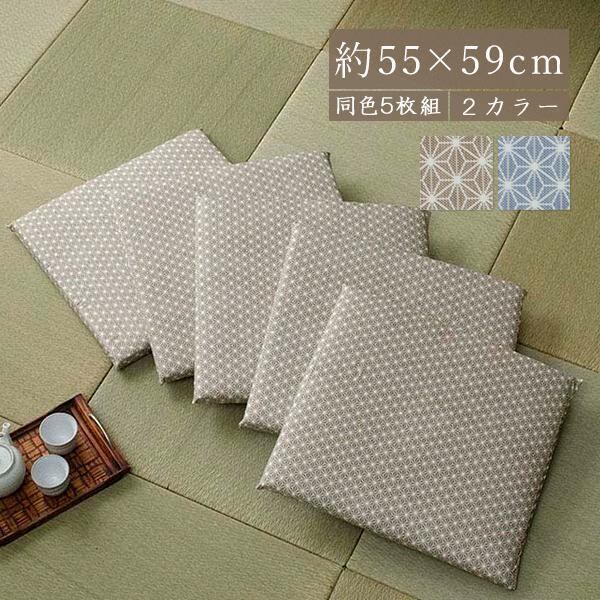 座布団 おしゃれ 5枚セット 55 59 銘仙判 固綿 日本製 和柄 麻の葉 クッション お盆 約55cn×59cm 同色5枚組 3590530-630
