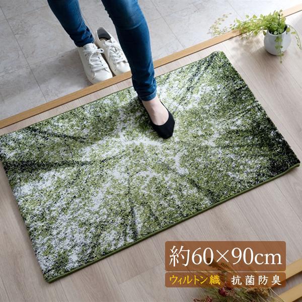 玄関マット おしゃれ トルコ製 ウィルトン織り マット 木洩れ日 森 林 北欧風 ふかふか フリーゼセット 抗菌 防臭 消臭 幾何学模様 かわいい 約60×90cm 2046669