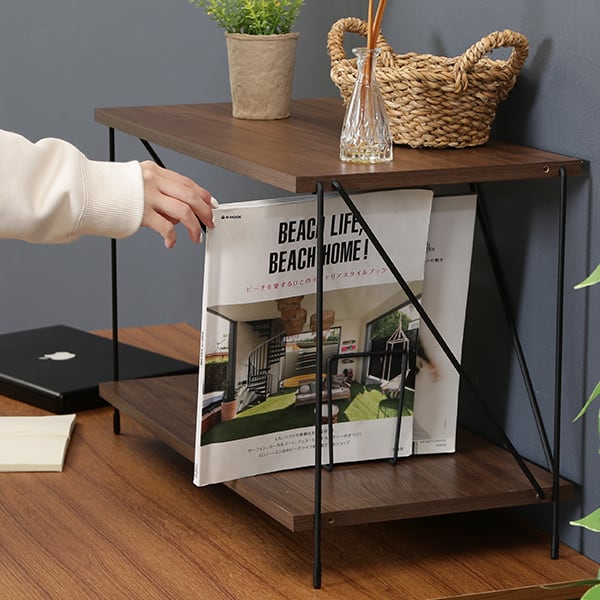 ラック 棚 収納 本棚 収納棚 北欧 おしゃれ ウォールシェルフ オープンラック マガジンラック サイドテーブル ナイトテーブル 幅60cm 2段