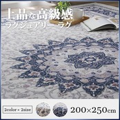 遊び毛が出にくいシェニール糸を使用しています。毛足が短いためお掃除も簡単です。上品な風合いのジャガード織りでペルシャ絨毯のようなメダリオン柄を表現。デザイン性が高く耐久性にも優れています。さらっとした肌触りで、季節を問わず一年中お使いいただけます。裏面にはフローリングを傷つけにくい不織布張り。滑り止め加工も施しています。ホットカーペット、床暖房対応。