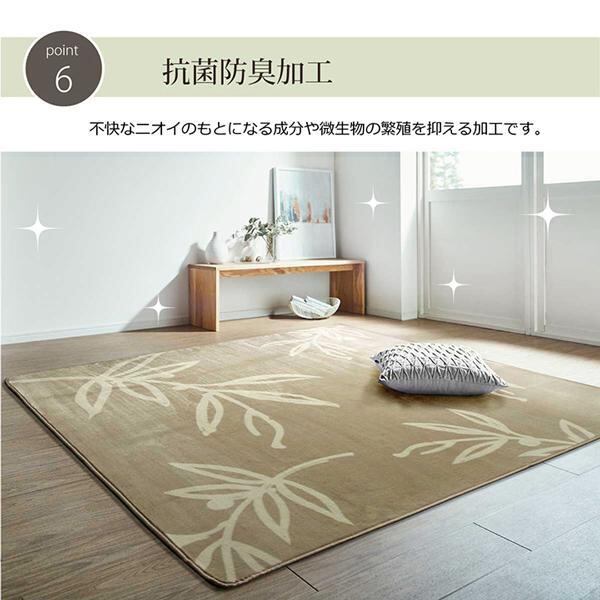 抗菌・防臭加工を施したラグカーペット。表地はフランネルで柔らかい生地を使用。軽量で持ち運びが楽々。薄手で小さく折りたたむことができますので、収納時にも場所を取りません。フローリングを傷つけにくいよう、裏には不織布を貼っています。洗濯機で洗えるウォッシャブル仕様。電気カーペットカバーとしてもご使用頂けます。オールシーズンご使用頂けます。