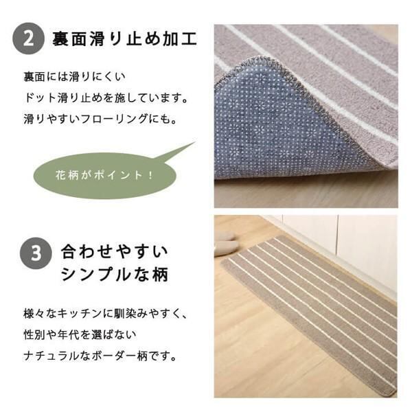 キッチンマット 120 北欧 洗える おしゃれ 台所 マット ボーダー 滑りにくい シンプル モダン 人気 おしゃれ 約45×120cm 2046319-219