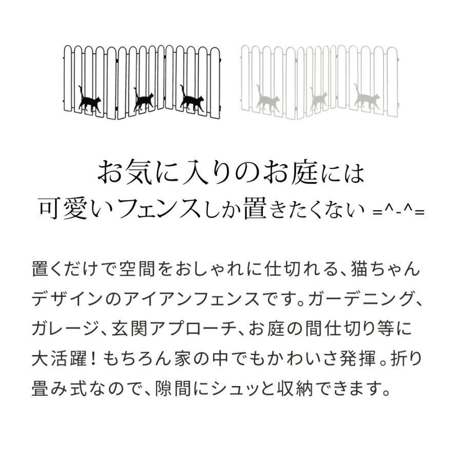 ガーデンフェンス アイアン フェンス diy おしゃれ 花壇 外構 柵 かわいい ねこ ネコ キャット cat ぬこ にゃんこ 折り畳み アイアンフェンス 猫3連 2枚組 NK120-2P