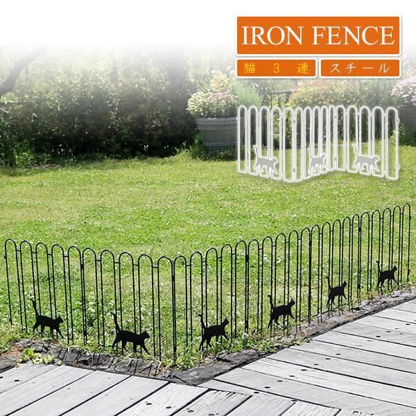 ガーデンフェンス アイアン フェンス diy おしゃれ 花壇 外構 柵 かわいい ねこ ネコ キャット cat ぬこ にゃんこ 折り畳み アイアンフェンス 猫3連 2枚組