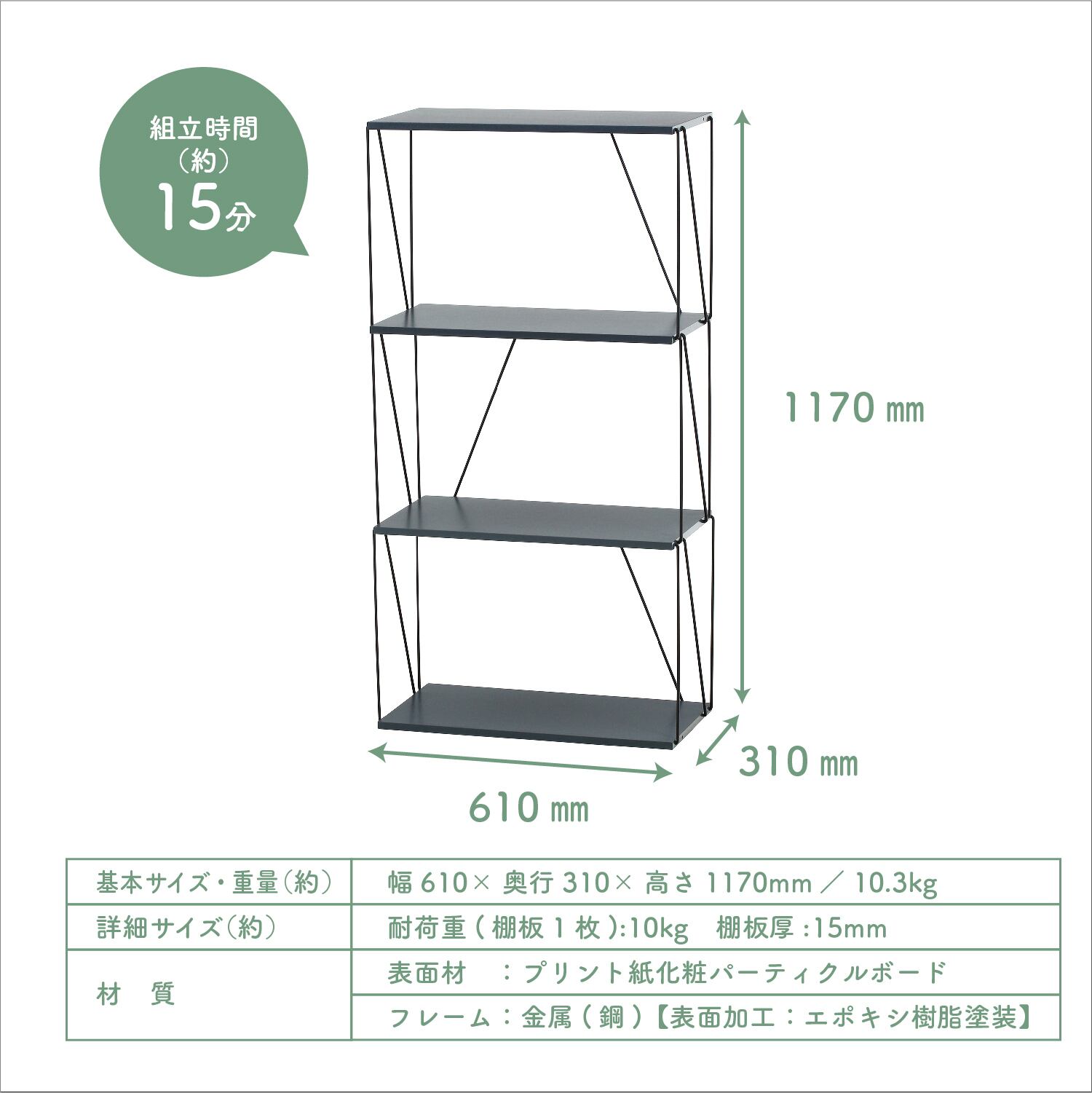ラック 棚 収納 本棚 収納棚 北欧 おしゃれ ウォールシェルフ オープンラック マガジンラック リビング収納 ワイヤーラック 幅60cm 4段 fj-67323-327