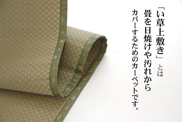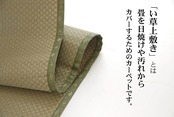 珍しい(ヘリ際のみ)市松柄の上敷きです。上敷きを敷くだけで畳のお部屋をリフレッシュ出来ます。新品の畳を汚さないためのカバーにご使用下さい。