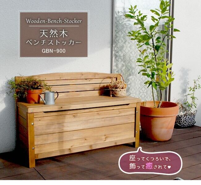 木製 ガーデンベンチ 90 ベンチ収納 天然木 ベンチストッカー 収納 おしゃれ 長椅子 ボックス ベンチ 屋外 屋内 北欧風 コンパクト 収納庫 GBN-900