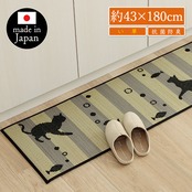 キッチンマット 180 台所マット おしゃれ 日本製 和風 国産 い草 イ草 井草 ネコ ねこ 猫 黒猫 マット 夏 抗菌 防臭 癒し 滑りにくい 約43×180cm ik-1081960015105