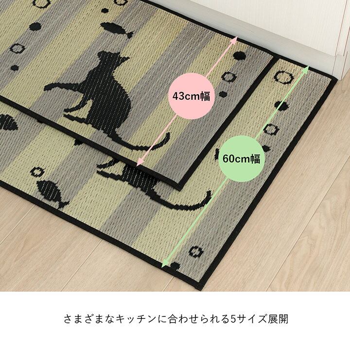 キッチンマット 270 台所マット おしゃれ 日本製 和風 国産 い草 イ草 井草 ネコ ねこ 猫 黒猫 マット 夏 抗菌 防臭 癒し 滑りにくい 約60×270cm