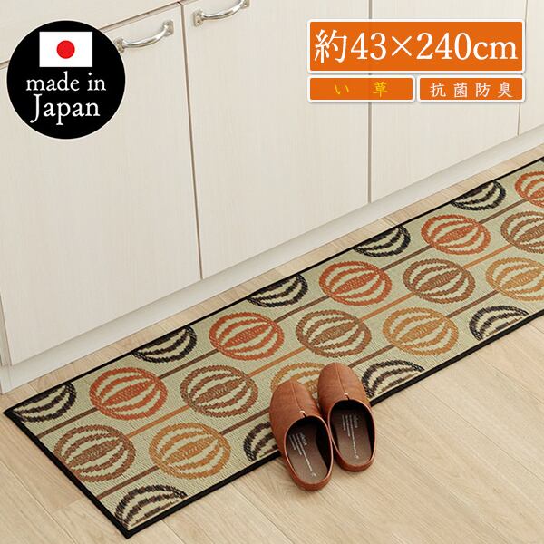 キッチンマット 240 台所マット おしゃれ 日本製 和風 国産 い草 イ草 井草 いぐさ イグサ 北欧風 レトロ マット 夏 抗菌 防臭 癒し 滑りにくい 約43×240cm ik-1081870205205