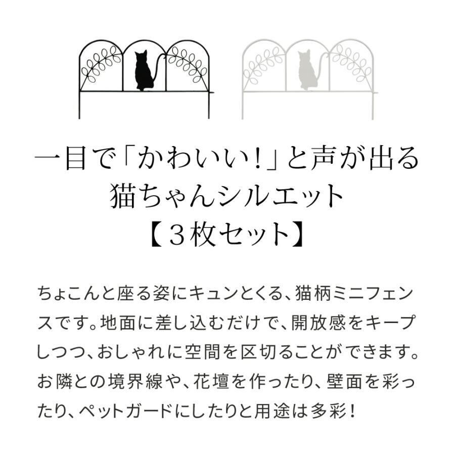 ガーデンフェンス アイアン フェンス diy おしゃれ 花壇 外構 柵 かわいい ねこ ネコ キャット cat ぬこ にゃんこ 簡単設置 アイアンフェンス ミニ 猫 3枚組