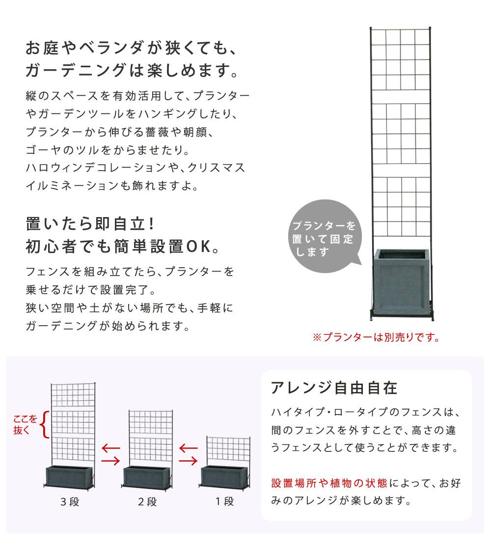 ※フェンスラックのみの販売です。プランター(鉢)は付属していません。