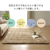 あったかにこだわった6層のこたつ敷き布団です。撥水加工で安心。6層の中にはアルミシート・ポリエチレンシートを使用することで蓄熱・断熱機能があるため冬の寒い日でも床からの底冷えを軽減してくれます。またボリュームがあるためふっくらとした座り心地と表地にはなめらかなタッチ感のフランネルを使用しました。